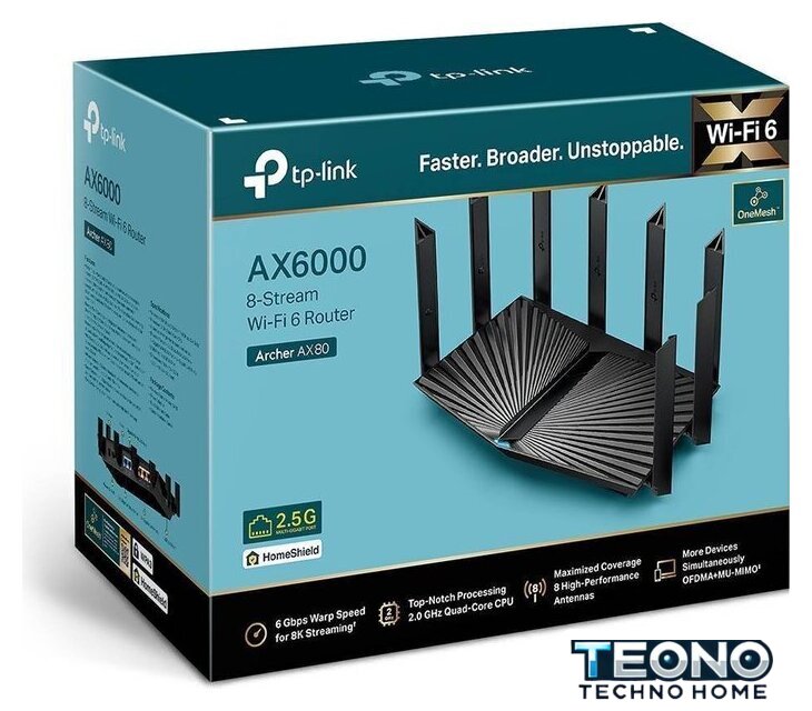 Комплектация | Wi-Fi роутер Archer AX80Адаптер питанияКабель Ethernet RJ45Краткое руководство по установке |